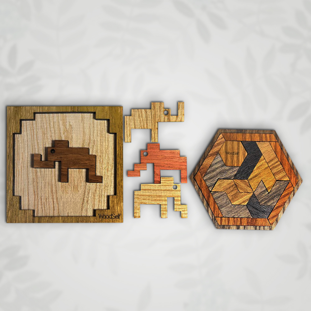 Головоломки WoodSelf спроектированы специально для взрослых рук. Мы убрали детскую мультяшность, оставив строгий дизайн и высокое качество дерева.
